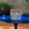 Hand-painted white scallop patterns grace these small ceramic mugs, creating a gentle, wave-like motif that's both soothing and sophisticated. The painted details add an artisan touch that makes each sip feel a bit more special.